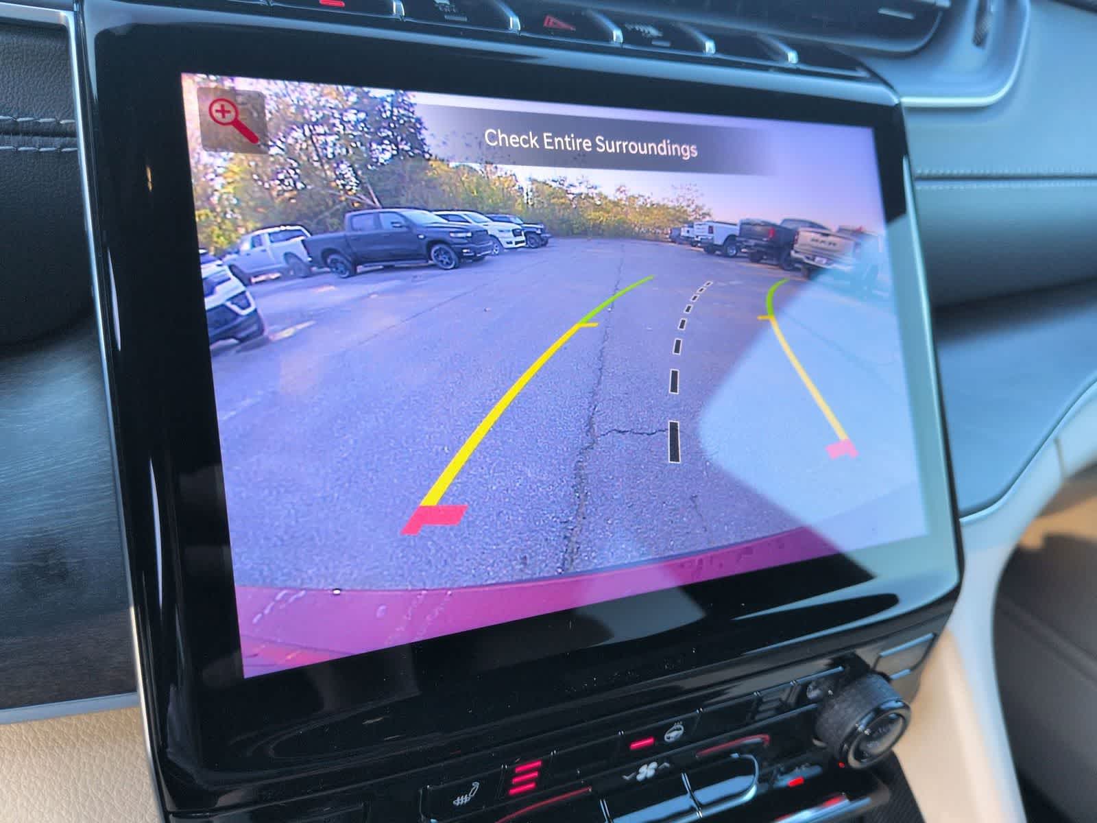 Grand Cherokee L Limited is nicely equipped with Quick Order Package 22E, Trailer Tow Package (220 Amp Alternator, 7 and 4 Pin Wiring Harness, Automatic Headlamp Leveling System, Class IV Receiver Hitch, Dual Exhaust Tips, Heavy-Duty Engine Cooling, Rear Load Leveling Suspension, and Trailer Hitch Zoom), 3.45 Rear Axle Ratio, 3rd row seats: split-bench, 4-Wheel Disc Brakes, 6 Speakers, ABS brakes, Active Noise Control System, Air Conditioning, Alloy wheels, AM/FM radio: SiriusXM with 360L, Anti-whiplash front head restraints, Audio memory, Auto High-beam Headlights, Automatic temperature control, Brake assist, Bumpers: body-color, Capri Leatherette Seats, Compass, Delay-off headlights, Driver door bin, Driver vanity mirror, Dual front impact airbags, Dual front side impact airbags, Dual-Pane Panoramic Sunroof, Electronic Stability Control, Emergency communication system, Four wheel independent suspension, Front anti-roll bar, Front Bucket Seats, Front Center Armrest w/Storage, Front dual zone A/C, Front fog lights, Front reading lights, Fully automatic headlights, Garage door transmitter, Heated door mirrors, Heated front seats, Heated rear seats, Heated steering wheel, Illuminated entry, Interior Rear Facing Camera, Knee airbag, Low tire pressure warning, Manual Fold Seatbacks, Memory seat, Model Year Tracking, Navigation System, Normal Duty Suspension, Occupant sensing airbag, Outside temperature display, Overhead airbag, Overhead console, Panic alarm, ParkView Rear Back-Up Camera, Passenger door bin, Passenger vanity mirror, Power door mirrors, Power driver seat, Power Liftgate, Power passenger seat, Power steering, Power windows, Radio data system, Radio: Uconnect 5 Nav with 10.1 Display, Rear air conditioning, Rear anti-roll bar, Rear reading lights, Rear window defroster, Rear window wiper, Reclining 3rd row seat, Remote keyless entry, Security system, Speed control, Speed-Sensitive Wipers, Split folding rear seat, Spoiler, Steering wheel mounted audio controls, Tachometer, Telescoping steering wheel, Tilt steering wheel, Traction control, Trip computer, Turn signal indicator mirrors, Variably intermittent wipers, Voltmeter, Wheels: 18 x 8.0 Polished/Painted Aluminum, and Wheels: 20 x 8.5 Machined/Painted Aluminum.