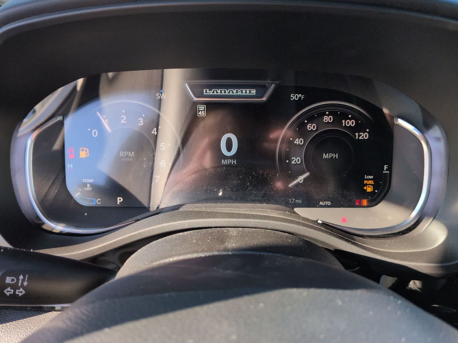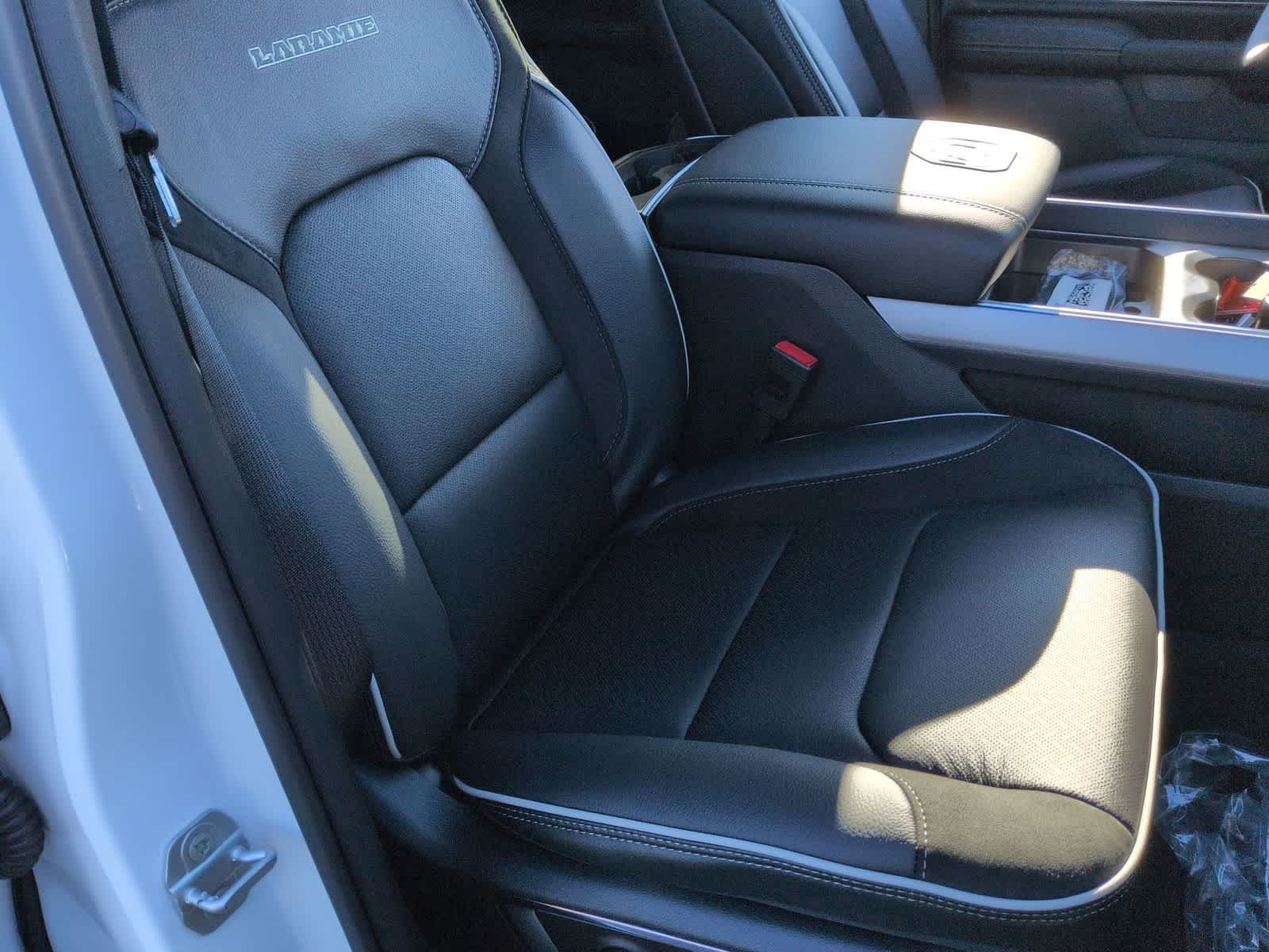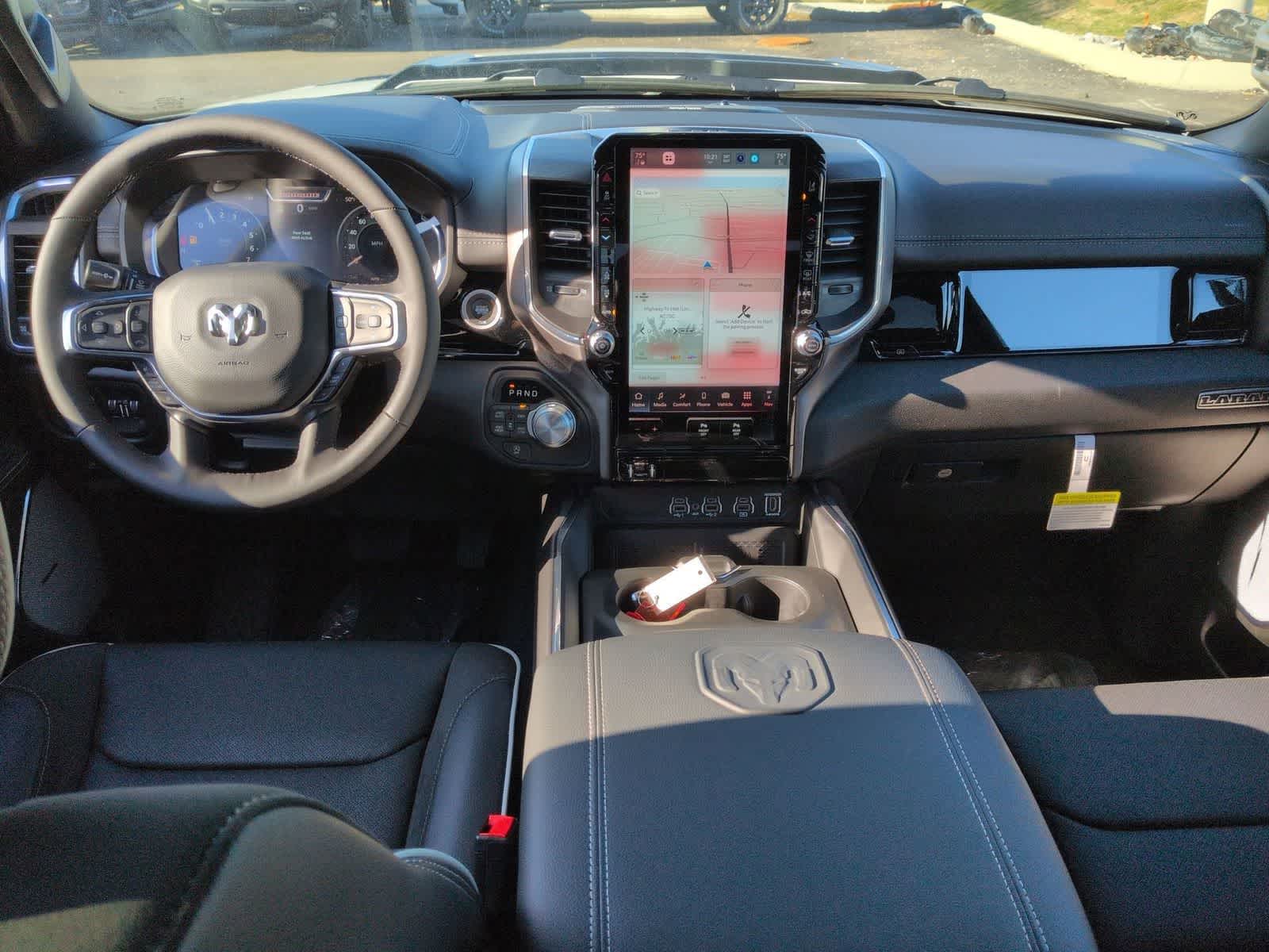 1500 Laramie is nicely equipped with Advanced Safety Group II (12-Way/1-Way Trailer Connector, Active Driving Assist System, Drowsy Driver Detection, Evasive Steer Assist, Exterior Mirrors Approach Lamps, Intersection Collision Assist System, Surround View Camera System, and Traffic Sign Recognition), Laramie Level 2 Equipment Group (14.4 Touchscreen Display, 4G LTE Wi-Fi Hot Spot, Cluster 12 TFT Color Display, Connected Travel and Traffic Services, Connectivity - US/Canada, Front Passenger Interactive Display, GPS Navigation, Harman/Kardon 19 Speaker Premium Sound, Integrated Center Stack Radio, Integrated Voice Command with Bluetooth®, Power Tailgate, Radio: Uconnect 5 Nav with 14.4 Display, Rain Sensitive Windshield Wipers, SiriusXM Radio Service, SiriusXM with 360L, and USB Host Flip), Night Edition (Accent Color Door Handles, Accent Color Premium Power Mirrors, Accent Color Tailgate Handle, Anti-Spin Differential Rear Axle, Auto Power-Folding Mirrors, Auto-Dimming Exterior Driver Mirror, Black Exterior Truck Badging, Black Headlamp Bezels, Black Interior Accents, Black Painted Exterior Mirrors Caps, Black Tail Lamp Bezels, Body Color Front Bumper, Body Color Rear Bumper with Step Pads, Convex Wide-Angle Exterior Mirror Insert, Dual Exhaust with Black Tips, Exterior Mirrors Courtesy Lamps, Exterior Mirrors with Heating Element, Exterior Mirrors with Memory, Exterior Mirrors with Supplemental Signals, Grille Surround 3 Black Texture 2 Black, Pirelli Brand Tires, Proximity Approach/Departure Lamps, RAM Grille Badge - Black, Sport Performance Hood, and Wheels: 22 x 9 Forged Aluminum), Quick Order Package 21H Laramie, Technology Group (Heads-Up Display and LED CHMSL Lamp), 10 Speakers, 3.55 Rear Axle Ratio, 4-Wheel Disc Brakes, ABS brakes, Active Noise Control System, Adjustable pedals, Air Conditioning, Alloy wheels, AM/FM radio: SiriusXM with 360L, Apple CarPlay/Android Auto, Audio memory, Auto High-beam Headlights, Auto-dimming door mirrors, Auto-dimming Rear-View mirror, Automatic temperature control, Brake assist, Bumpers: chrome, Chrome Exterior Mirrors, Compass, Delay-off headlights, Dome Dual LED Reading Lamp, Driver door bin, Driver vanity mirror, Dual front impact airbags, Dual front side impact airbags, Dual-Pane Panoramic Sunroof, Electronic Stability Control, Front anti-roll bar, Front Bucket Seats, Front Center Armrest w/Storage, Front dual zone A/C, Front fog lights, Front reading lights, Front wheel independent suspension, Fully automatic headlights, Garage door transmitter, Heated door mirrors, Heated front seats, Heated rear seats, Heated steering wheel, Illuminated entry, Leather steering wheel, Leather Trimmed Bucket Seats, LED Dome/Reading Lamp, Low tire pressure warning, Memory seat, Navigation System, Occupant sensing airbag, Off-Road Information Pages, Outside temperature display, Overhead airbag, Overhead console, Panic alarm, ParkView Rear Back-Up Camera, Passenger door bin, Passenger vanity mirror, Pedal memory, Power Deployable Running Boards, Power door mirrors, Power driver seat, Power passenger seat, Power steering, Power windows, Radio data system, Radio: Uconnect 5 Navigation with 12.0 Display, RAM Grille Badge - Chrome, Rear anti-roll bar, Rear reading lights, Rear seat center armrest, Rear step bumper, Remote keyless entry, Security system, Speed control, Split folding rear seat,