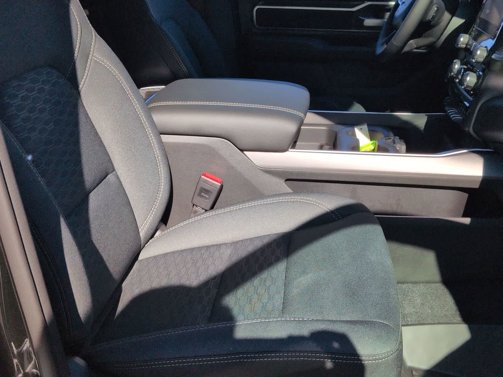 1500 Big Horn/Lone Star is nicely equipped with Big Horn Level 1 Equipment Group (115V Auxiliary Power Outlet, 2nd Row in Floor Storage Bins, 3 Rear Seat Head Restraints, 4 Way Front Headrests, 400W Inverter, Auto Power-Folding Mirrors, Auto-Dimming Exterior Driver Mirror, Auto-Dimming Rear-View Mirror, Black Exterior Mirrors, Black Premium Power Mirrors, Body Color Fender Flares, Bucket Seats, Center Console Parts Module, Convex Wide-Angle Exterior Mirror Insert, Deluxe Cloth Bucket Seats, Exterior Mirrors Courtesy Lamps, Exterior Mirrors with Heating Element, Exterior Mirrors with Supplemental Signals, Front Seat Back Map Pockets, Full Length Floor Console, Glove Box Lamp, Heated Front Seats, Heated Steering Wheel, Leather Wrapped Steering Wheel, Manual Adjust 4-Way Front Passenger Seat, Power 2-Way Driver Lumbar Adjust, Power Adjust 8-Way Driver Seat, Power Adjustable Pedals, Rear 60/40 Folding Seat, Rear Center Armrest, Rear Dome with on/Off Switch Lamp, Rear Power Sliding Window, Rear Window Defroster, SiriusXM Radio Service, SiriusXM Satellite Radio, Steering Wheel Mounted Audio Controls, Sun Visors with Illuminated Vanity Mirrors, and Universal Garage Door Opener), Quick Order Package 27Z Big Horn, Sport Appearance Package (Black Interior Accents, Body Color Door Handles, Body Color Front Bumper, Body Color Rear Bumper with Step Pads, Body Color Tailgate Handle, Grille Surround 1 Body Color Texture 1 Black, and RAM Grille Badge - Chrome), 33 Gallon Fuel Tank, 4-Wheel Disc Brakes, 48V Belt Starter Generator, 4G LTE Wi-Fi Hot Spot, 6 Speakers, ABS brakes, Air Conditioning, Alloy wheels, AM/FM radio, Apple CarPlay, Apple CarPlay/Android Auto, Auto High-beam Headlights, Brake assist, Bumpers: chrome, Cloth Bucket Seats, Compass, Connectivity - US/Canada, Delay-off headlights, Driver door bin, Dual front impact airbags, Dual front side impact airbags, Electronic Stability Control, Front anti-roll bar, Front Bucket Seats, Front Center Armrest w/Storage, Front fog lights, Front reading lights, Front wheel independent suspension, Fully automatic headlights, Global Telematics Box Module, Google Android Auto, GPS Antenna Input, Heated door mirrors, Illuminated entry, Integrated Center Stack Radio, Integrated Voice Command with Bluetooth®, Low tire pressure warning, Manual Adjust 4-Way Driver Seat, Manual Folding Exterior Mirrors, MOPAR Front and Rear Rubber Floor Mats, Occupant sensing airbag, Outside temperature display, Overhead airbag, Overhead console, Panic alarm, ParkView Rear Back-Up Camera, Passenger door bin, Passenger vanity mirror, Power door mirrors, Power steering, Power windows, Radio data system, Radio: Uconnect 5 W with 8.4 Display, Rear anti-roll bar, Rear step bumper, Rear Wheelhouse Liners, Remote keyless entry, Speed control, Supplier Part Tracking (J-1), Tachometer, Telescoping steering wheel, Tilt steering wheel, Traction control, Trailer Brake Control, Trip computer, USB Host Flip, Variably intermittent wipers, Voltmeter, Wheel to Wheel Side Steps, and Wheels: 20 x 9 Aluminum Chrome Clad.