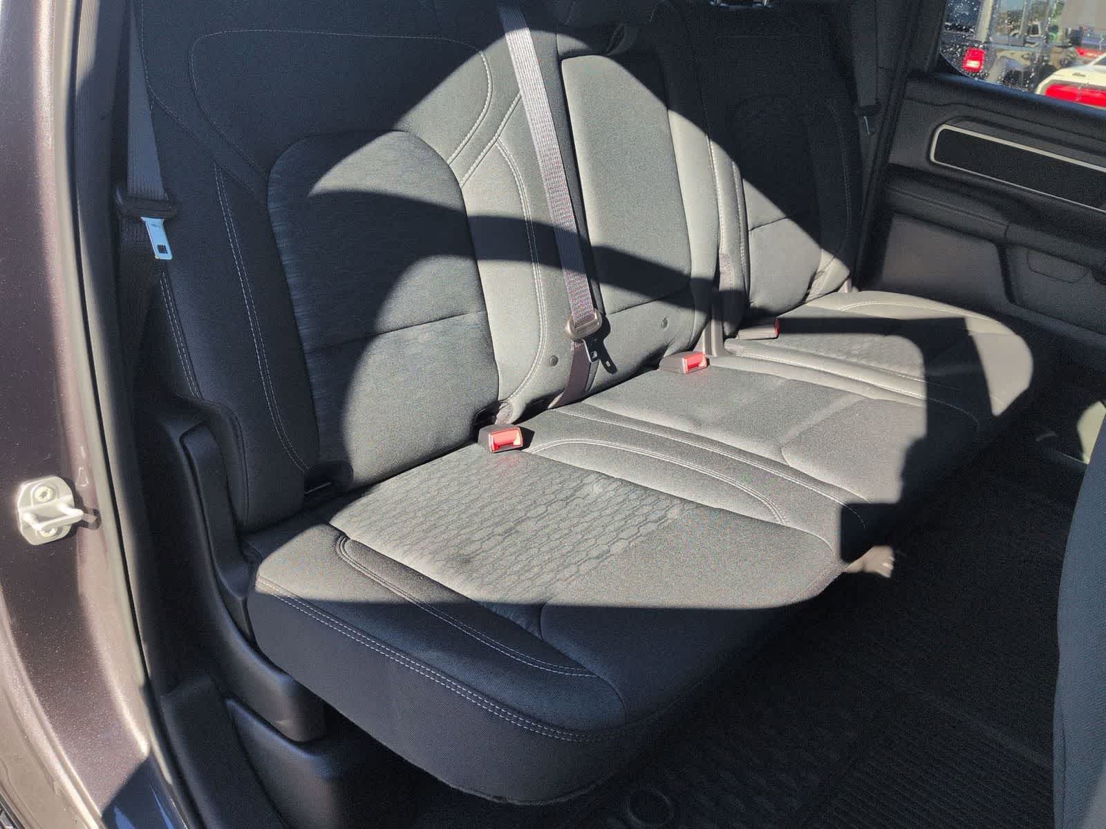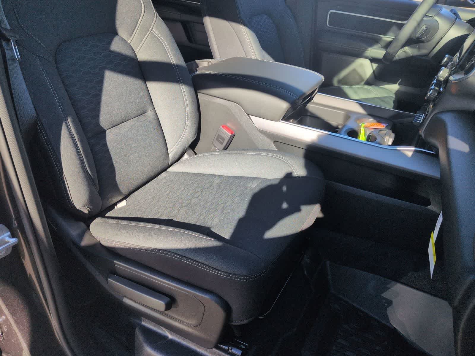 1500 Big Horn/Lone Star is nicely equipped with Big Horn Level 1 Equipment Group (115V Auxiliary Power Outlet, 2nd Row in Floor Storage Bins, 3 Rear Seat Head Restraints, 4 Way Front Headrests, 400W Inverter, Auto Power-Folding Mirrors, Auto-Dimming Exterior Driver Mirror, Auto-Dimming Rear-View Mirror, Black Exterior Mirrors, Black Premium Power Mirrors, Body Color Fender Flares, Bucket Seats, Center Console Parts Module, Convex Wide-Angle Exterior Mirror Insert, Deluxe Cloth Bucket Seats, Exterior Mirrors Courtesy Lamps, Exterior Mirrors with Heating Element, Exterior Mirrors with Supplemental Signals, Front Seat Back Map Pockets, Full Length Floor Console, Glove Box Lamp, Heated Front Seats, Heated Steering Wheel, Leather Wrapped Steering Wheel, Manual Adjust 4-Way Front Passenger Seat, Power 2-Way Driver Lumbar Adjust, Power Adjust 8-Way Driver Seat, Power Adjustable Pedals, Rear 60/40 Folding Seat, Rear Center Armrest, Rear Dome with on/Off Switch Lamp, Rear Power Sliding Window, Rear Window Defroster, SiriusXM Radio Service, SiriusXM Satellite Radio, Steering Wheel Mounted Audio Controls, Sun Visors with Illuminated Vanity Mirrors, and Universal Garage Door Opener), Quick Order Package 27Z Big Horn, Sport Appearance Package (Black Interior Accents, Body Color Door Handles, Body Color Front Bumper, Body Color Rear Bumper with Step Pads, Body Color Tailgate Handle, Grille Surround 1 Body Color Texture 1 Black, and RAM Grille Badge - Chrome), 33 Gallon Fuel Tank, 4-Wheel Disc Brakes, 48V Belt Starter Generator, 4G LTE Wi-Fi Hot Spot, 6 Speakers, ABS brakes, Air Conditioning, Alloy wheels, AM/FM radio, Apple CarPlay, Apple CarPlay/Android Auto, Auto High-beam Headlights, Brake assist, Bumpers: chrome, Cloth Bucket Seats, Compass, Connectivity - US/Canada, Delay-off headlights, Driver door bin, Dual front impact airbags, Dual front side impact airbags, Electronic Stability Control, Front anti-roll bar, Front Bucket Seats, Front Center Armrest w/Storage, Front fog lights, Front reading lights, Front wheel independent suspension, Fully automatic headlights, Global Telematics Box Module, Google Android Auto, GPS Antenna Input, Heated door mirrors, Illuminated entry, Integrated Center Stack Radio, Integrated Voice Command with Bluetooth®, Low tire pressure warning, Manual Adjust 4-Way Driver Seat, Manual Folding Exterior Mirrors, MOPAR Front and Rear Rubber Floor Mats, Occupant sensing airbag, Outside temperature display, Overhead airbag, Overhead console, Panic alarm, ParkView Rear Back-Up Camera, Passenger door bin, Passenger vanity mirror, Power door mirrors, Power steering, Power windows, Radio data system, Radio: Uconnect 5 W with 8.4 Display, Rear anti-roll bar, Rear step bumper, Rear Wheelhouse Liners, Remote keyless entry, Speed control, Supplier Part Tracking (J-1), Tachometer, Telescoping steering wheel, Tilt steering wheel, Traction control, Trailer Brake Control, Trip computer, USB Host Flip, Variably intermittent wipers, Voltmeter, Wheel to Wheel Side Steps, and Wheels: 20 x 9 Aluminum Chrome Clad.