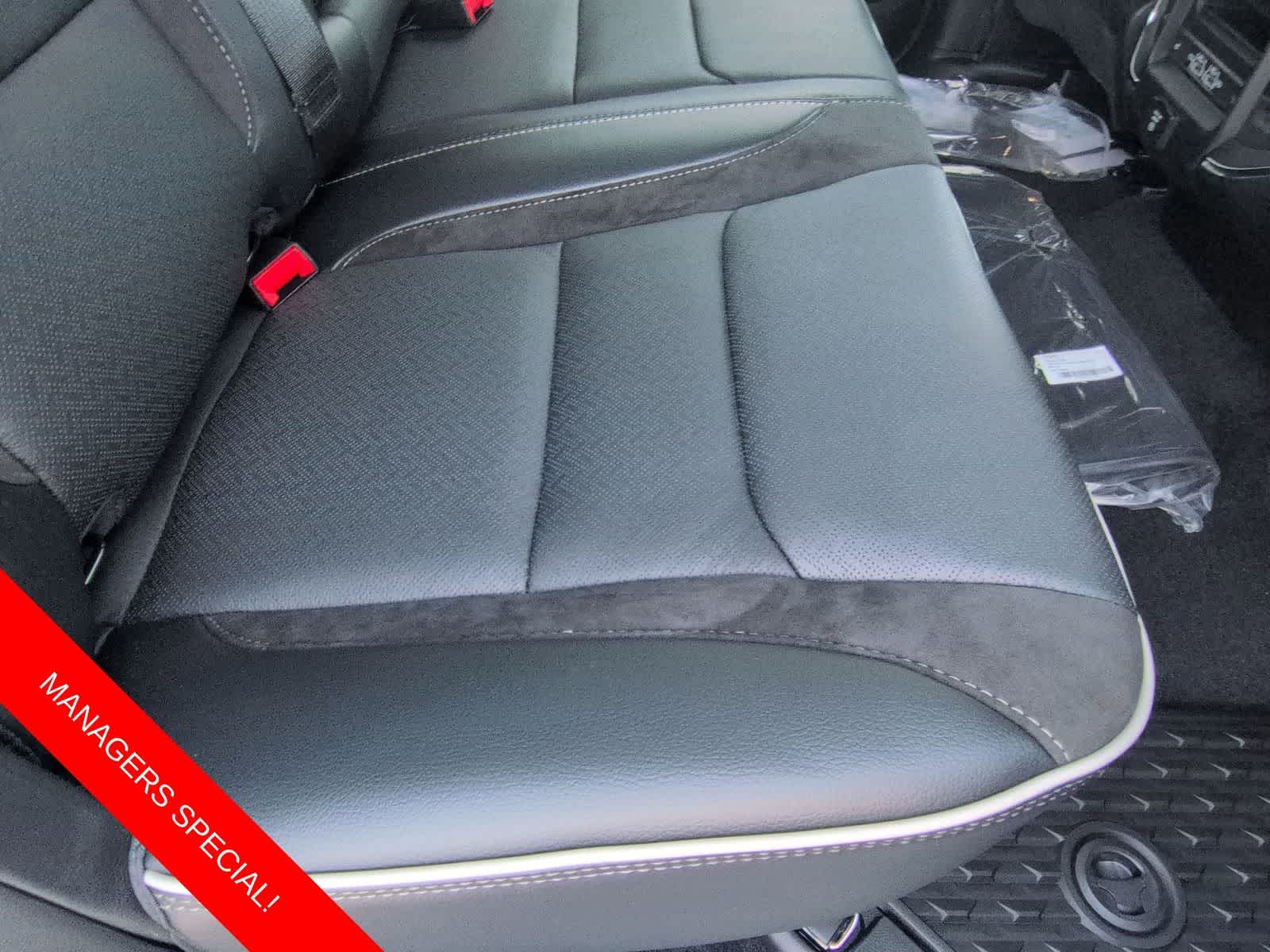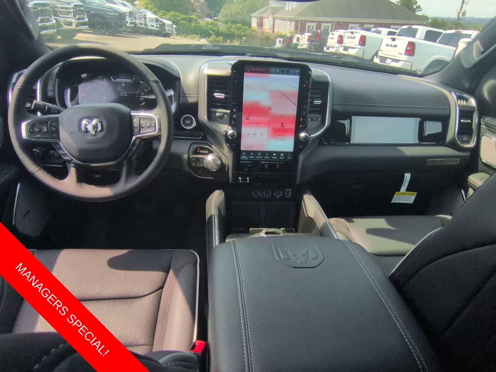 1500 Laramie is nicely equipped with Laramie Level 2 Equipment Group (4G LTE Wi-Fi Hot Spot, Apple CarPlay, Connected Travel & Traffic Services, Connectivity - US/Canada, Disassociated Touchscreen Display, Global Telematics Box Module (TBM), Google Android Auto, GPS Antenna Input, GPS Navigation, HD Radio, Integrated Center Stack Radio, Integrated Voice Command w/Bluetooth®, Radio: Uconnect 5 Nav w/14.4 Display, SiriusXM Radio Service, SiriusXM w/360L, and USB Host Flip), Night Edition (Anti-Spin Differential Rear Axle, Auto Power-Folding Mirrors, Auto-Dimming Exterior Driver Mirror, Black Interior Accents, Convex Wide-Angle Exterior Mirror Insert, Exterior Mirrors Courtesy Lamps, Exterior Mirrors w/Heating Element, Exterior Mirrors w/Memory, Exterior Mirrors w/Supplemental Signals, and Wheels: 22 x 9 Forged Aluminum), Quick Order Package 21H Laramie, 10 Speakers, 3.55 Rear Axle Ratio, 4-Wheel Disc Brakes, ABS brakes, Air Conditioning, Alloy wheels, AM/FM radio: SiriusXM with 360L, Apple CarPlay/Android Auto, Audio memory, Auto High-beam Headlights, Auto-dimming door mirrors, Auto-dimming Rear-View mirror, Automatic temperature control, Brake assist, Bumpers: chrome, Chrome Exterior Mirrors, Compass, Delay-off headlights, Dome Dual LED Reading Lamp, Driver door bin, Driver vanity mirror, Dual front impact airbags, Dual front side impact airbags, Dual-Pane Panoramic Sunroof, Electronic Stability Control, Front anti-roll bar, Front Bucket Seats, Front Center Armrest w/Storage, Front dual zone A/C, Front fog lights, Front reading lights, Front wheel independent suspension, Fully automatic headlights, Garage door transmitter, Heated door mirrors, Heated front seats, Heated rear seats, Heated steering wheel, Illuminated entry, Leather steering wheel, Leather Trimmed Bucket Seats, LED Dome/Reading Lamp, Low tire pressure warning, Memory seat, Navigation System, Occupant sensing airbag, Off-Road Information Pages, Outside temperature display, Overhead airbag, Overhead console, Panic alarm, ParkView Rear Back-Up Camera, Passenger door bin, Passenger vanity mirror, Power Deployable Running Boards, Power door mirrors, Power driver seat, Power passenger seat, Power steering, Power windows, Radio data system, Radio: Uconnect 5 Nav w/12.0 Display, RAM Grille Badge - Chrome, Rear anti-roll bar, Rear reading lights, Rear seat center armrest, Rear step bumper, Remote keyless entry, Security system, Speed control, Split folding rear seat, Steering wheel mounted audio controls, Tachometer, Telescoping steering wheel, Tilt steering wheel, Traction control, Trailer Brake Control, Trip computer, Turn signal indicator mirrors, Variably intermittent wipers, Ventilated front seats, Voltmeter, and Wheels: 20 x 9 Premium Paint/Polish.