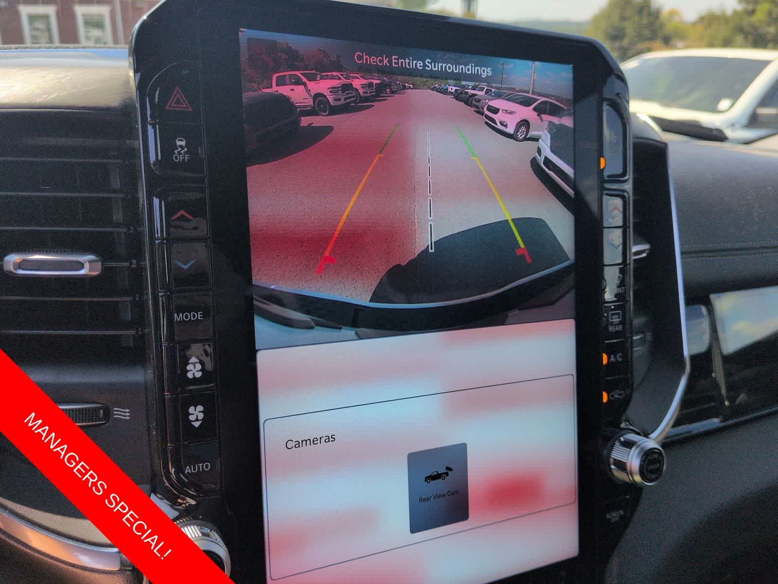 1500 Laramie is nicely equipped with Laramie Level 2 Equipment Group (14.4 Touchscreen Display, 4G LTE Wi-Fi Hot Spot, Cluster 12 TFT Color Display, Connected Travel and Traffic Services, Connectivity - US/Canada, Front Passenger Interactive Display, GPS Navigation, Harman/Kardon 19 Speaker Premium Sound, Integrated Center Stack Radio, Integrated Voice Command with Bluetooth®, Power Tailgate, Radio: Uconnect 5 Nav with 14.4 Display, Rain Sensitive Windshield Wipers, SiriusXM Radio Service, SiriusXM with 360L, and USB Host Flip), Night Edition (Accent Color Door Handles, Accent Color Premium Power Mirrors, Accent Color Tailgate Handle, Anti-Spin Differential Rear Axle, Auto Power-Folding Mirrors, Auto-Dimming Exterior Driver Mirror, Black Exterior Truck Badging, Black Headlamp Bezels, Black Interior Accents, Black Painted Exterior Mirrors Caps, Black Tail Lamp Bezels, Body Color Front Bumper, Body Color Rear Bumper with Step Pads, Convex Wide-Angle Exterior Mirror Insert, Dual Exhaust with Black Tips, Exterior Mirrors Approach Lamps, Exterior Mirrors Courtesy Lamps, Exterior Mirrors with Heating Element, Exterior Mirrors with Memory, Exterior Mirrors with Supplemental Signals, Grille Surround 3 Black Texture 2 Black, Pirelli Brand Tires, Proximity Approach/Departure Lamps, RAM Grille Badge - Black, Sport Performance Hood, and Wheels: 22 x 9 Forged Aluminum), Quick Order Package 21H Laramie, 10 Speakers, 3.55 Rear Axle Ratio, 4-Wheel Disc Brakes, ABS brakes, Active Noise Control System, Air Conditioning, Alloy wheels, AM/FM radio: SiriusXM with 360L, Apple CarPlay/Android Auto, Audio memory, Auto High-beam Headlights, Auto-dimming door mirrors, Auto-dimming Rear-View mirror, Automatic temperature control, Brake assist, Bumpers: chrome, Chrome Exterior Mirrors, Compass, Delay-off headlights, Dome Dual LED Reading Lamp, Driver door bin, Driver vanity mirror, Dual front impact airbags, Dual front side impact airbags, Dual-Pane Panoramic Sunroof, Electronic Stability Control, Front anti-roll bar, Front Bucket Seats, Front Center Armrest w/Storage, Front dual zone A/C, Front fog lights, Front reading lights, Front wheel independent suspension, Fully automatic headlights, Garage door transmitter, Heated door mirrors, Heated front seats, Heated rear seats, Heated steering wheel, Illuminated entry, Leather steering wheel, Leather Trimmed Bucket Seats, LED Dome/Reading Lamp, Low tire pressure warning, Memory seat, Navigation System, Occupant sensing airbag, Off-Road Information Pages, Outside temperature display, Overhead airbag, Overhead console, Panic alarm, ParkView Rear Back-Up Camera, Passenger door bin, Passenger vanity mirror, Power Deployable Running Boards, Power door mirrors, Power driver seat, Power passenger seat, Power steering, Power windows, Radio data system, Radio: Uconnect 5 Navigation with 12.0 Display, RAM Grille Badge - Chrome, Rear anti-roll bar, Rear reading lights, Rear seat center armrest, Rear step bumper, Remote keyless entry, Security system, Speed control, Split folding rear seat, Steering wheel mounted audio controls, Tachometer, Telescoping steering wheel, Tilt steering wheel, Traction control, Trailer Brake Control, Trip computer, Turn signal indicator mirrors, Variably intermittent wipers, Ventilated front seats, Voltmeter, and Wheels: 20 x 9 Premium Paint/Polish.