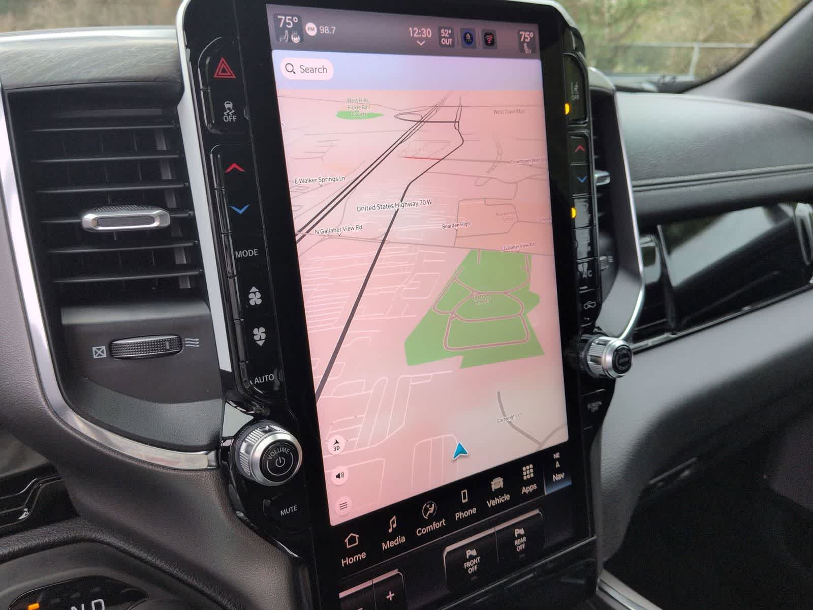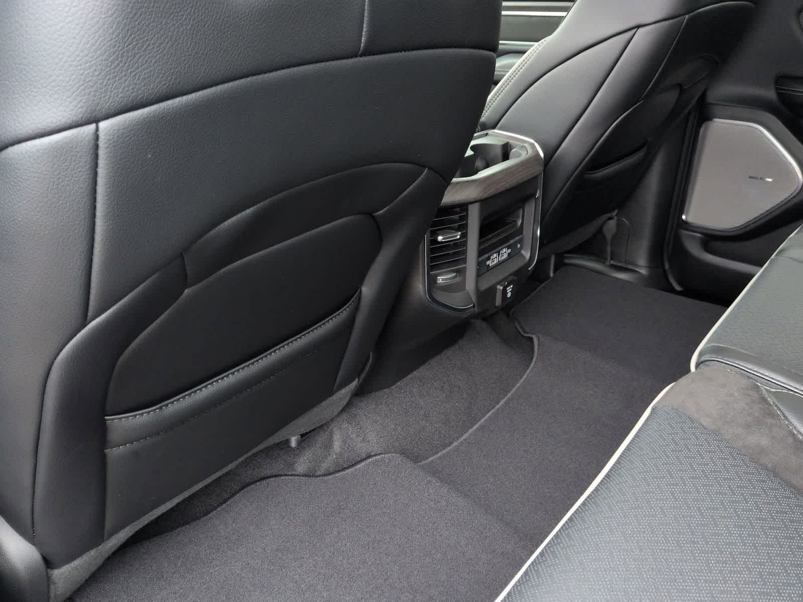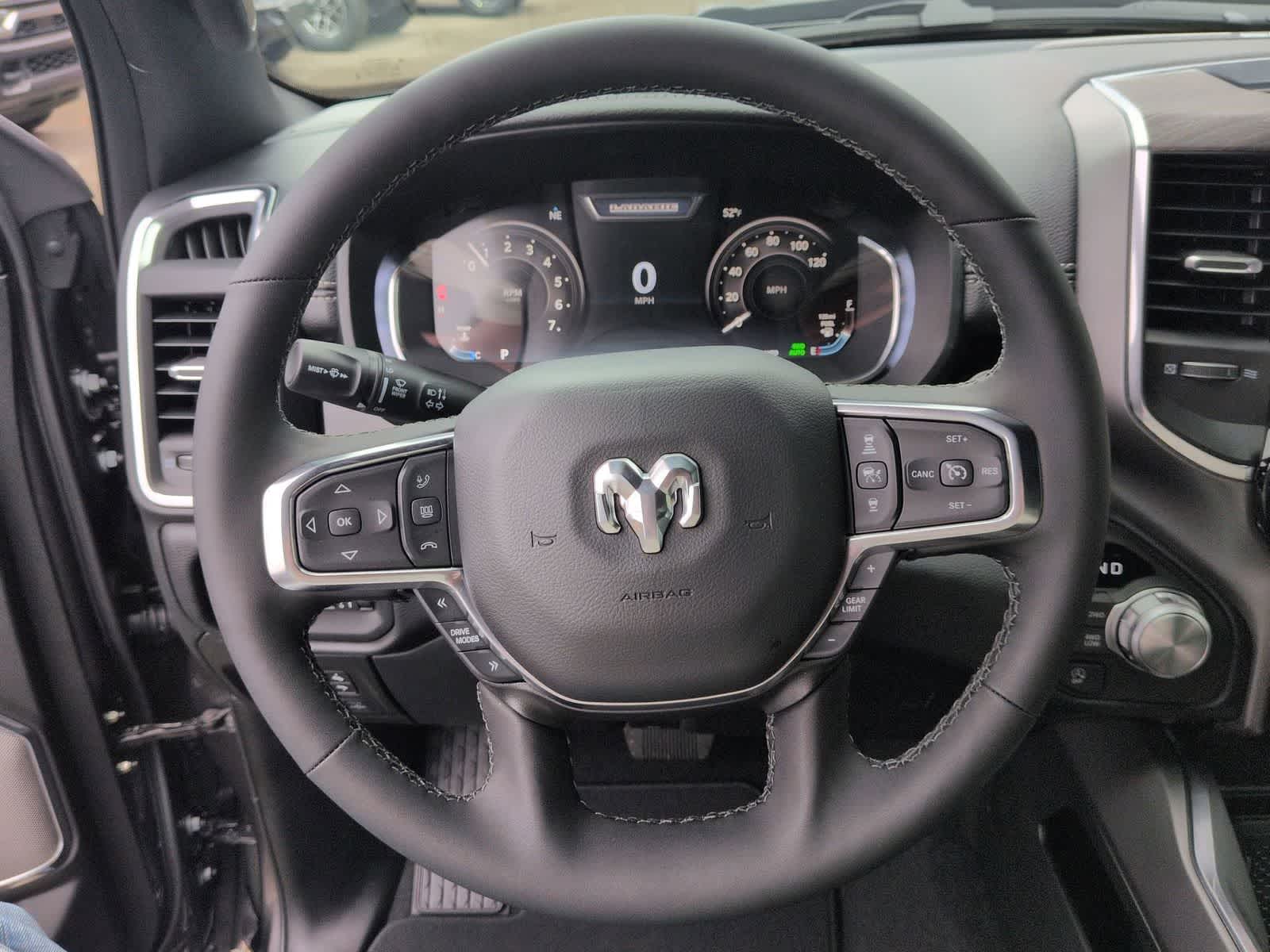 1500 Laramie is nicely equipped with Bed Utility Group (Exterior 115V AC Outlet, MOPAR 4 Adjustable Cargo Tie-Down Hooks, and MOPAR Spray in Bedliner), Laramie Level 2 Equipment Group (14.4 Touchscreen Display, 4G LTE Wi-Fi Hot Spot, Cluster 12 TFT Color Display, Connected Travel and Traffic Services, Connectivity - US/Canada, Front Passenger Interactive Display, GPS Navigation, Harman/Kardon 19 Speaker Premium Sound, Integrated Center Stack Radio, Integrated Voice Command with Bluetooth®, Power Tailgate, Radio: Uconnect 5 Nav with 14.4 Display, Rain Sensitive Windshield Wipers, SiriusXM Radio Service, SiriusXM with 360L, and USB Host Flip), Night Edition (Accent Color Door Handles, Accent Color Premium Power Mirrors, Accent Color Tailgate Handle, Anti-Spin Differential Rear Axle, Auto Power-Folding Mirrors, Auto-Dimming Exterior Driver Mirror, Black Exterior Truck Badging, Black Headlamp Bezels, Black Interior Accents, Black Painted Exterior Mirrors Caps, Black Tail Lamp Bezels, Body Color Front Bumper, Body Color Rear Bumper with Step Pads, Convex Wide-Angle Exterior Mirror Insert, Dual Exhaust with Black Tips, Exterior Mirrors Approach Lamps, Exterior Mirrors Courtesy Lamps, Exterior Mirrors with Heating Element, Exterior Mirrors with Memory, Exterior Mirrors with Supplemental Signals, Grille Surround 3 Black Texture 2 Black, Pirelli Brand Tires, Proximity Approach/Departure Lamps, RAM Grille Badge - Black, Sport Performance Hood, and Wheels: 22 x 9 Forged Aluminum), Quick Order Package 27H Laramie, 10 Speakers, 4-Wheel Disc Brakes, ABS brakes, Active Noise Control System, Air Conditioning, Alloy wheels, AM/FM radio: SiriusXM with 360L, Apple CarPlay/Android Auto, Audio memory, Auto High-beam Headlights, Auto-dimming door mirrors, Auto-dimming Rear-View mirror, Automatic temperature control, Brake assist, Bumpers: chrome, Chrome Exterior Mirrors, Compass, Delay-off headlights, Dome Dual LED Reading Lamp, Driver door bin, Driver vanity mirror, Dual front impact airbags, Dual front side impact airbags, Dual-Pane Panoramic Sunroof, Electronic Stability Control, Front anti-roll bar, Front Bucket Seats, Front Center Armrest w/Storage, Front dual zone A/C, Front fog lights, Front reading lights, Front wheel independent suspension, Fully automatic headlights, Garage door transmitter, Heated door mirrors, Heated front seats, Heated rear seats, Heated steering wheel, Illuminated entry, Leather steering wheel, Leather Trimmed Bucket Seats, LED Dome/Reading Lamp, Low tire pressure warning, Memory seat, Navigation System, Occupant sensing airbag, Off-Road Information Pages, Outside temperature display, Overhead airbag, Overhead console, Panic alarm, ParkView Rear Back-Up Camera, Passenger door bin, Passenger vanity mirror, Power Deployable Running Boards, Power door mirrors, Power driver seat, Power passenger seat, Power steering, Power windows, Radio data system, Radio: Uconnect 5 Navigation with 12.0 Display, RAM Grille Badge - Chrome, Rear anti-roll bar, Rear reading lights, Rear seat center armrest, Rear step bumper, Remote keyless entry, Security system, Speed control, Split folding rear seat, Steering wheel mounted audio controls, Tachometer, Telescoping steering wheel, Tilt steering wheel, Traction control, Trailer Brake Control, Trip computer, Turn signal indicator mirrors, Variably intermittent wipers, Ventilated front seats, Voltmeter, and Wheels: 20 x 9 Premium Paint/Polish.