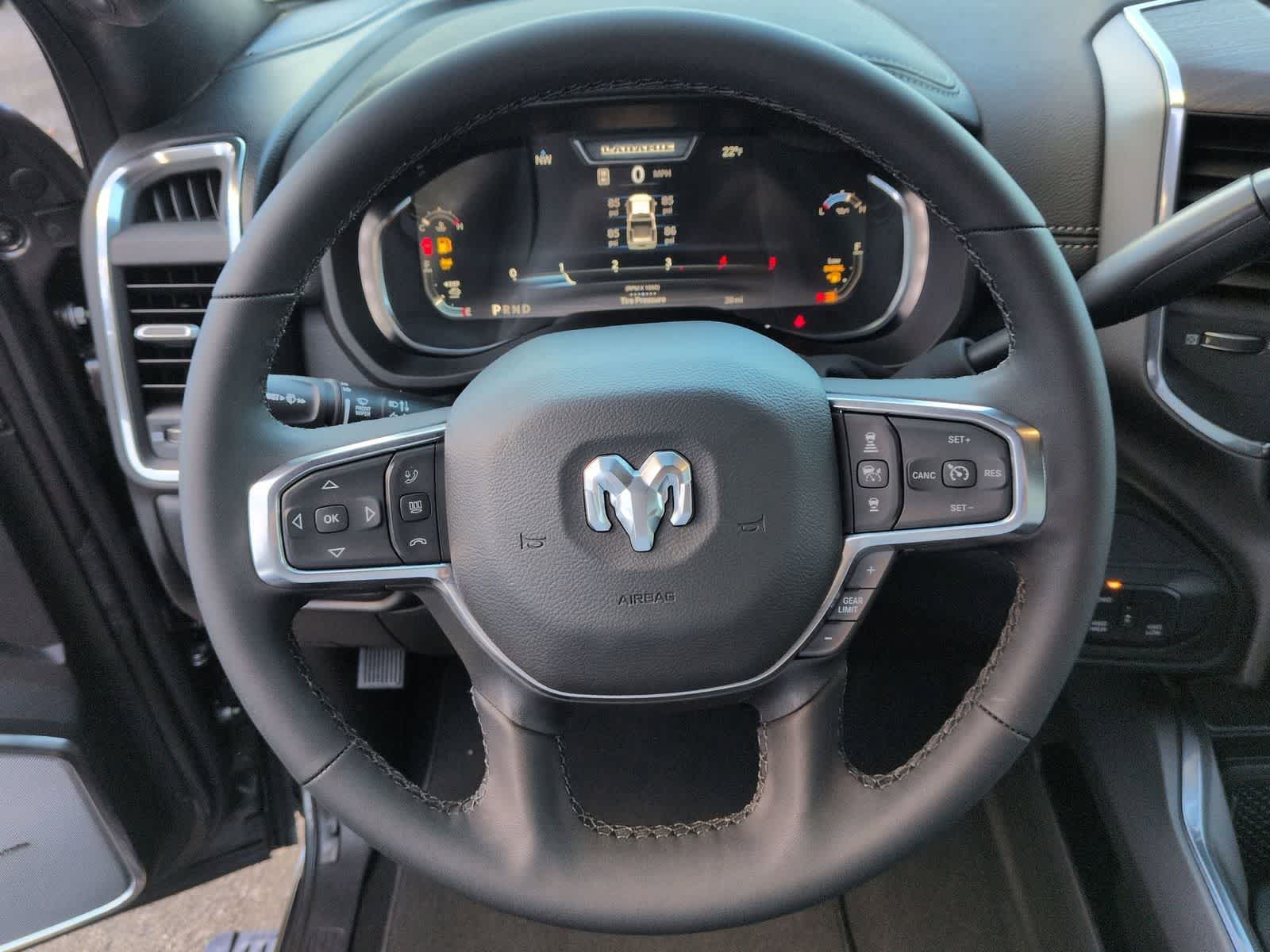 2500 Laramie is nicely equipped with Laramie Level 2 Plus Equipment Group (#1 Seat Foam Cushion, 115V Auxiliary Rear Power Outlet, 14.4 Touchscreen Display, 17 Speaker Harman/Kardon Premium Sound, 2 Way Rear Headrest Seat, 2nd Row in Floor Storage Bins, 4 Way Front Headrests, 4G LTE Wi-Fi Hot Spot, Active Lane Management System, Adaptive Steering System, Alexa Built-in, Anti-Spin Differential Rear Axle, Apple CarPlay, Auto Adjust in Reverse Exterior Mirrors, Auto Dim Exterior Mirror, Auto High Beam Headlamp Control, Auto Power-Folding Mirrors, Auto-Dimming Exterior Passenger Mirror, Bucket Seats, Center Stop Lamp with Cargo View Camera, Chrome Exterior Mirrors, Connected Travel and Traffic Services, Connectivity - US/Canada, Disassociated Touchscreen Display, Drowsy Driver Detection, Dual Wireless Charging Pad, Emergency Vehicle Alert System (EVAS), Exterior Mirrors Courtesy Lamps, Exterior Mirrors with Heating Element, Exterior Mirrors with Memory, Exterior Mirrors with Supplemental Signals, Foam Bottle Insert (door Trim Panel), Folding Flat Load Floor Storage, For Details, Visit DriveUconnect.com, For More Info, Call 800-643-2112, Forward and Reverse Utility Lights, Front Seat Back Map Pockets, Full Length Upgraded Floor Console, Global Telematics Box Module, Google Android Auto, GPS Antenna Input, GPS Navigation, HD Radio, Heated Front Seats, Heated Steering Wheel, High Back Seats, Integrated Voice Command with Bluetooth®, Leather Trimmed Bucket Seats, LED Bed Lighting, Mirror Running Lights, MOPAR Deployable Bed Step, MOPAR Spray in Bedliner, Off-Road Info Pages, Power 2-Way Driver Lumbar Adjust, Power 2-Way Passenger Lumbar Adjust, Power Adjust 8-Way Driver Seat, Power Adjust 8-Way Front Passenger Seat, Power Adjust Mirrors, Power Adjustable Pedals with Memory, Power Deployable Running Boards, Power Heated Fold Telescopic Mirrors with Memory, Power Telescoping Mirrors, Power-Adjustable Convex Aux Mirrors, Radio: Uconnect 5 Nav with 14.4 Display, Radio/Driver Seat/Mirrors/Pedals Memory, Rain Sensitive Windshield Wipers, Rear 60/40 Folding Seat, Remote Tailgate Release, Selectable Tire Fill Alert, SiriusXM Radio Service, SiriusXM with 360L, Traffic Sign Recognition, Trailer Tow Pages, and Ventilated Front Seats), Night Edition (Black Exterior Mirrors, Black Exterior Truck Badging, Black Wheel Center Hub, Body Color Grille-Surround, Gloss Black Grille Billets/Accents, Sport Performance Hood, and Wheels: 20 x 8.0 Black Painted Aluminum), Quick Order Package 24H Laramie, Towing Technology Group (Surround View Camera System, Trailer Reverse Guidance, and Trailer Tire Pressure Monitoring System), 10 Speakers, 4-Wheel Disc Brakes, 5th Wheel/Gooseneck Towing Prep Group, ABS brakes, Air Conditioning, Alloy wheels, AM/FM radio: SiriusXM with 360L, Apple CarPlay/Android Auto, Auto-dimming Rear-View mirror, Automatic temperature control, Brake assist, Bumpers: body-color, Clearance Lamps, Compass, Delay-off headlights, Driver door bin, Driver vanity mirror, Dual front impact airbags, Dual front side impact airbags, Electronic Stability Control, Front anti-roll bar, Front Center Armrest w/Storage, Front dual zone A/C, Front fog lights, Front reading lights, Fully automatic headlights, Garage door transmitter, Heated door mirrors, Heated front seats, Heated steering wheel, Illuminated entry, Leather Trim 40/20/40 Bench Seat, Low tire pressure warning, Manufacturers Statement of Origin, Navigation System, Occupant sensing airbag, Outside te
